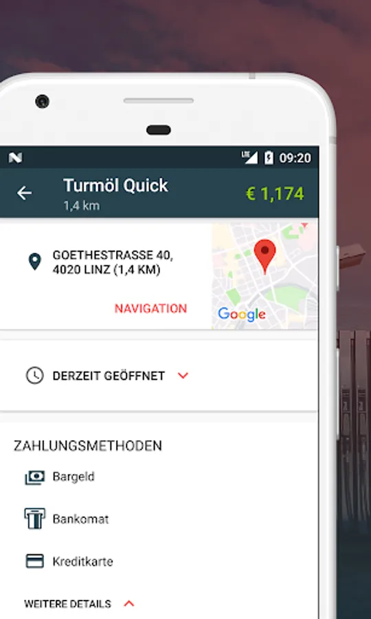 For this it is possible to see the details of the respective gas stations and also to start navigation directly there.