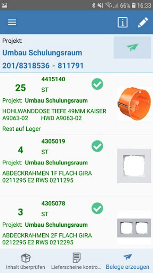 The app supports the goods receipt of Schäcke or Regro material deliveries and sends the transferred data to the comeconomy ERP system from comtech.