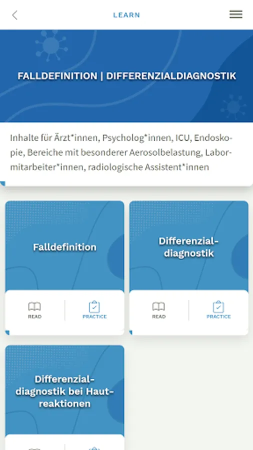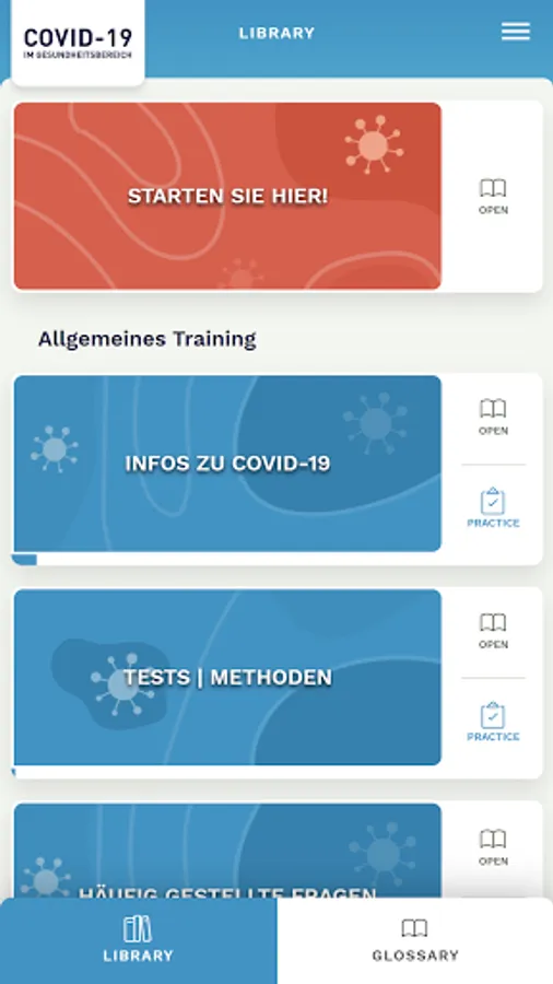 This app is an interactive training for everyday work in the health sector during the COVID-19 crisis. How do you behave properly? How do you properly put on and take off the various protective measures?