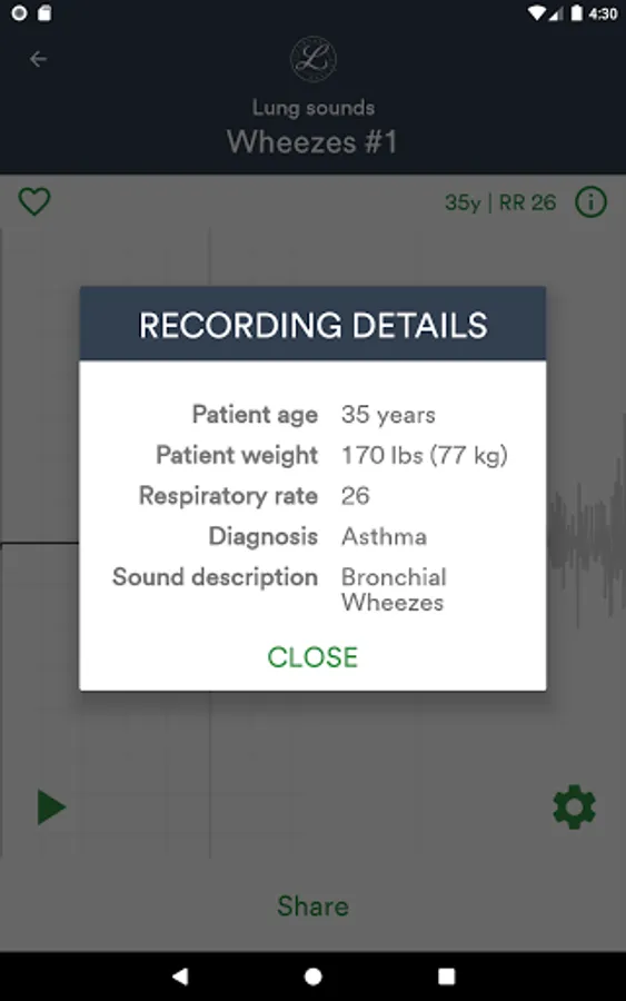 • Access an extensive heart and lung sound library and stream the sounds to students