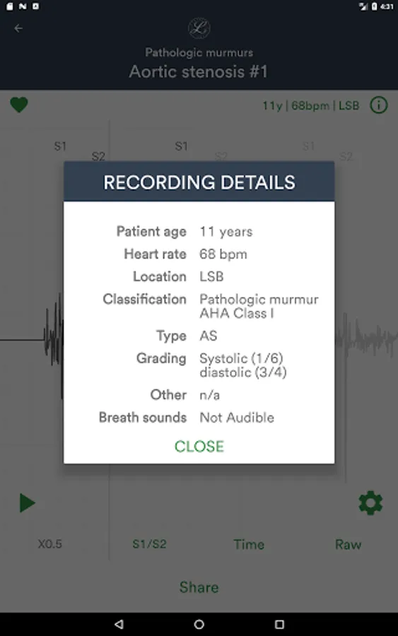 • Assess trainees’ recognition of heart murmurs in group testing with immediate results for everyone