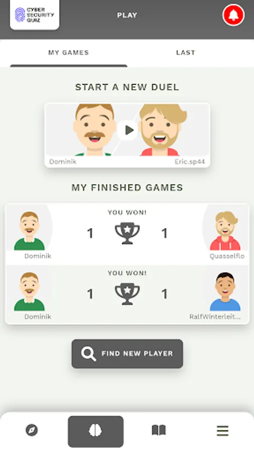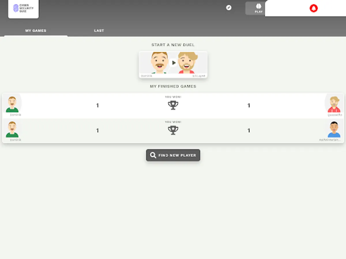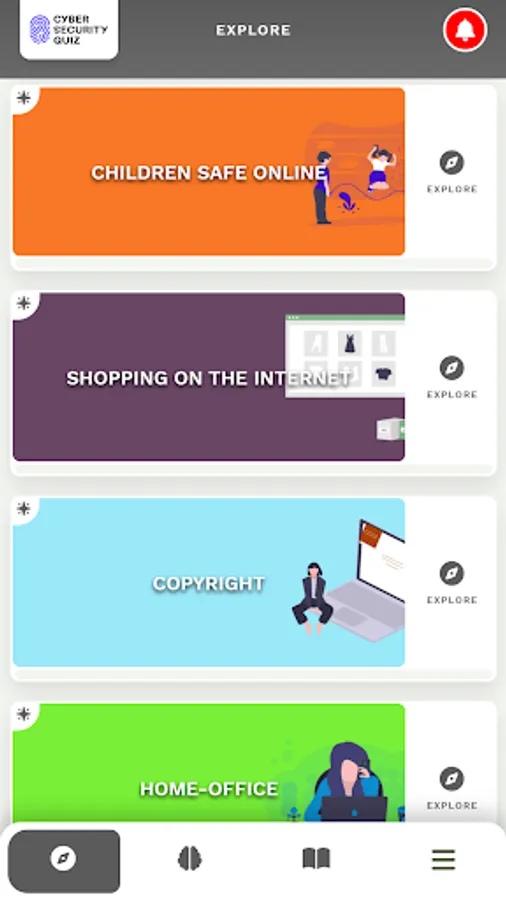 Learn on your own or challenge others across the world in the quiz duel mode, to gain the title of Cyber Security Master!