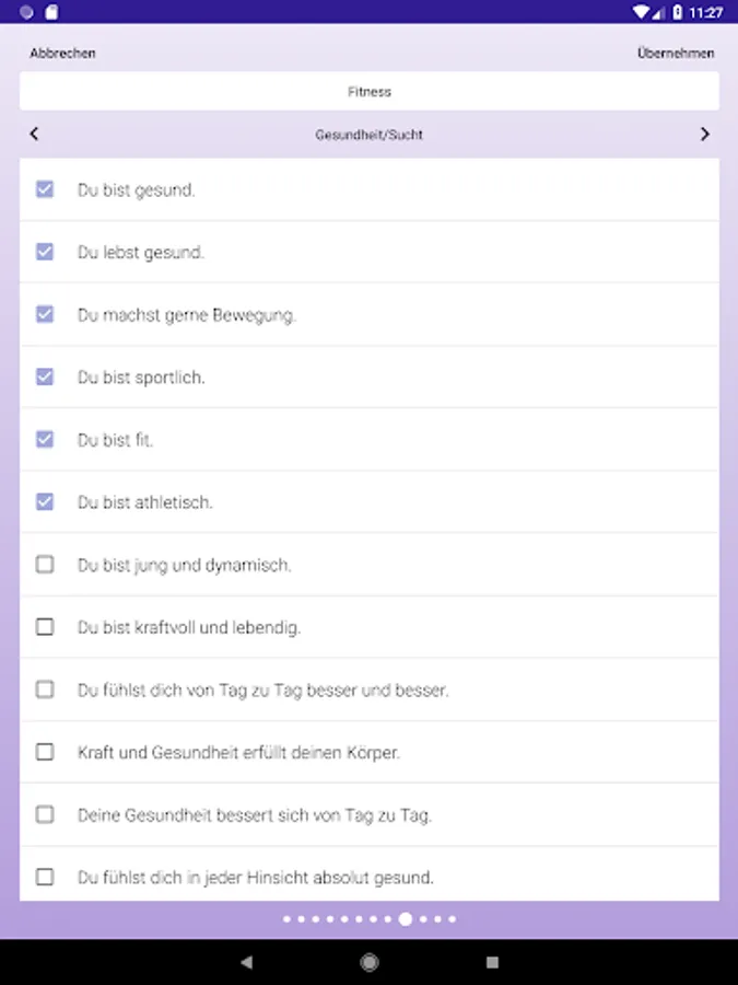 You can choose from pre-made sets or create individual sets of positive affirmations according to your needs. There are over 300 positive messages available from the following categories: