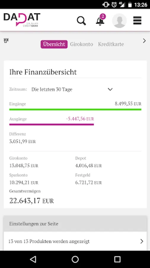 • Notifications: The finances at a glance. On request messages via push messages directly to your smartphone or tablet. Via SMS, email or push notification is the customer account automatically inputs and outputs, messages, and the development