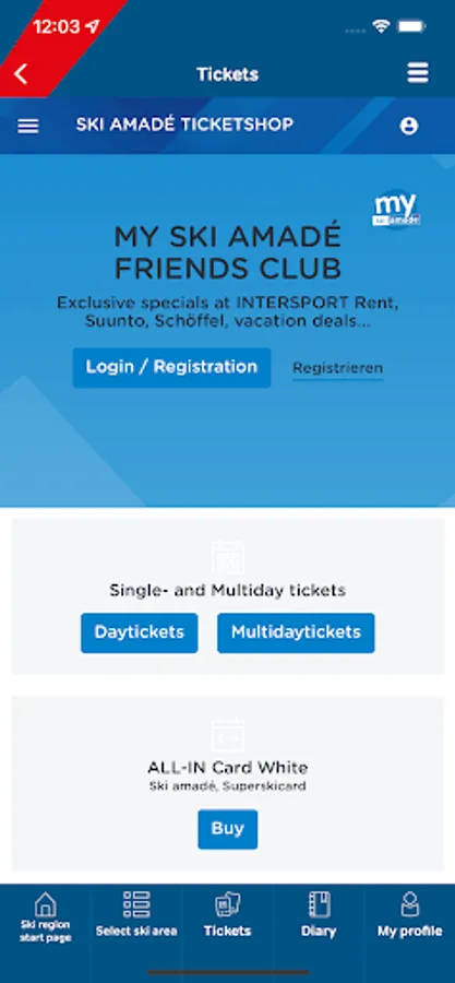 Ski tickets can be conveniently purchased directly via the app from home.