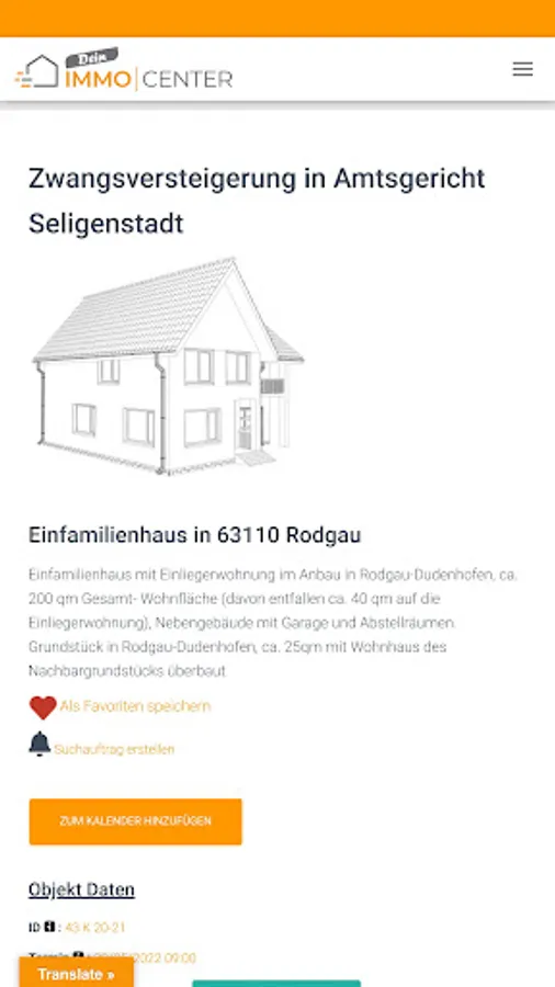Choose individual filters and be informed about all new objects of your choice, easily save interesting objects and add them to your calendar