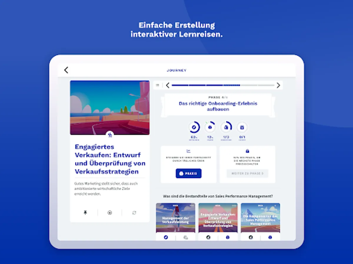 Learning analytics enable intelligent assessment. The interval-based learning method supports the brain in consolidating content. Social and playful learning mechanisms ensure a permanently high level of motivation.
