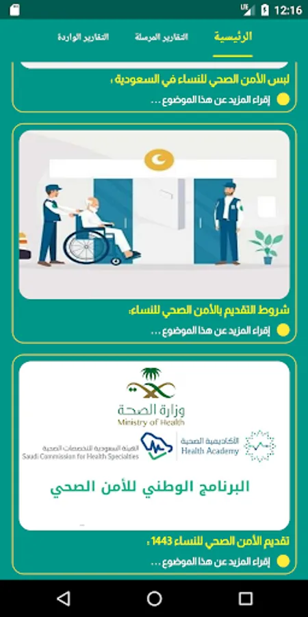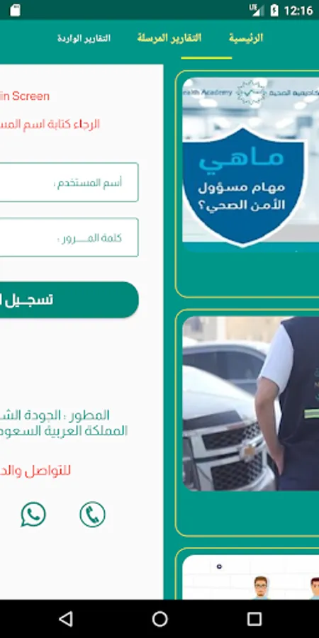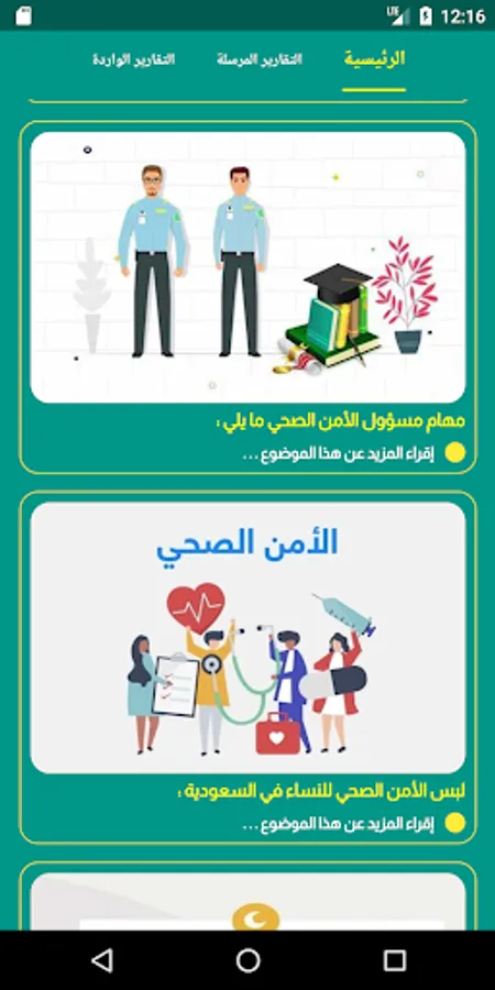Managing the tasks of health security personnel, an application that explains the tasks and functions of health security personnel after graduation. And assisting them in managing their tasks and paperwork (electronically) through a mobile phone application that allows them to practice their tasks in writing reports and sending them to the supervisor or manager.