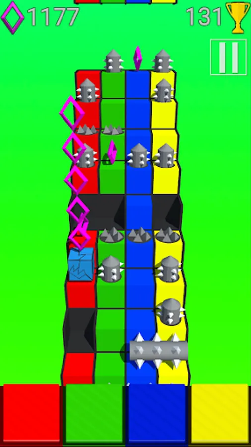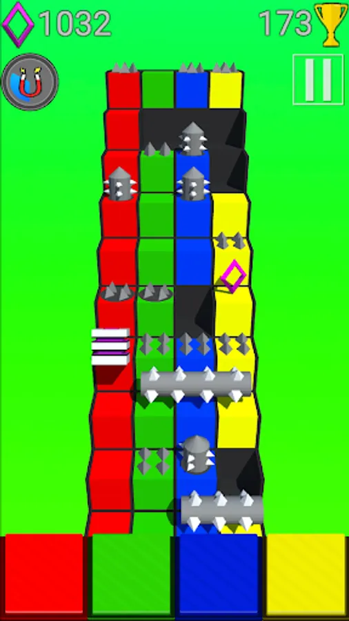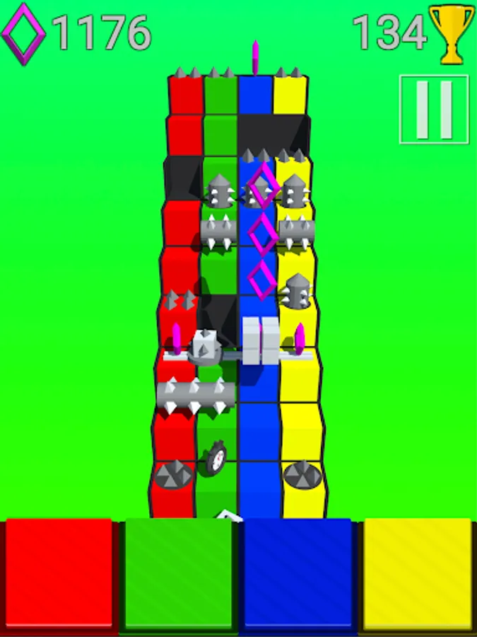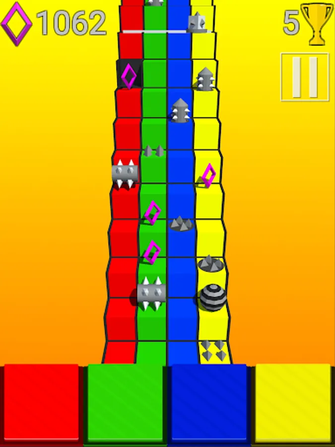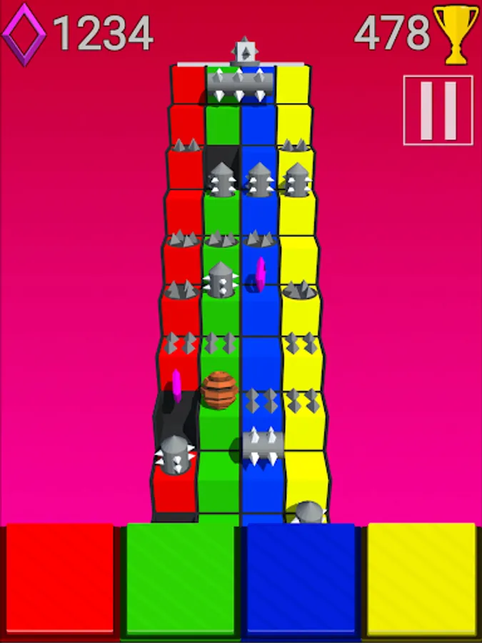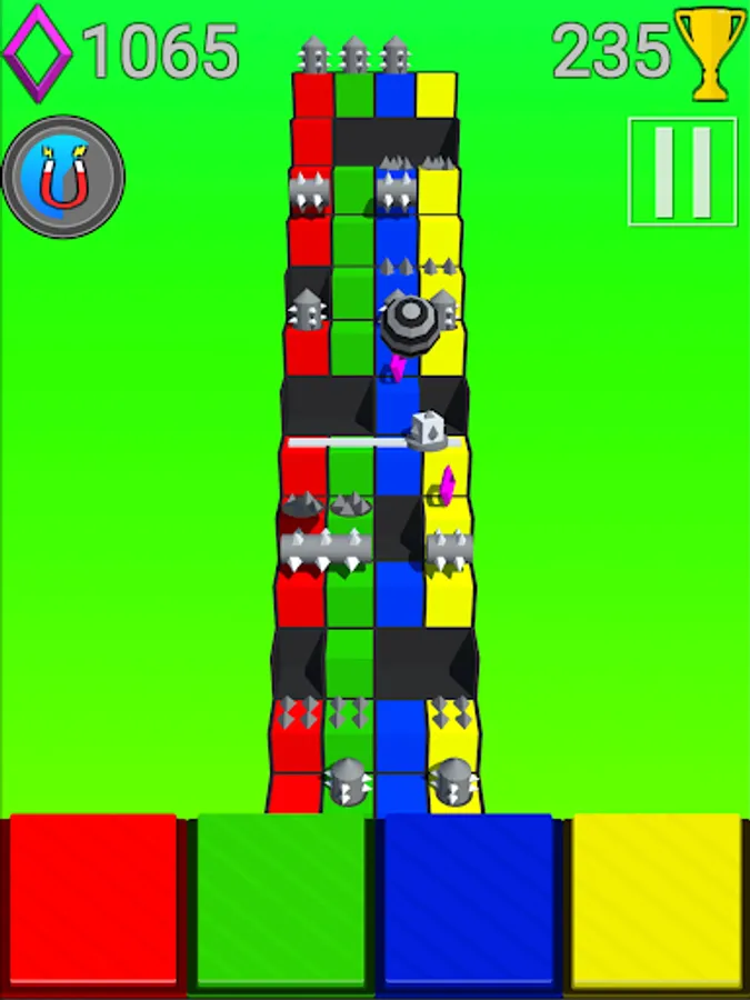 Use the right colors, to jump through a challenging terrain with 4 line.