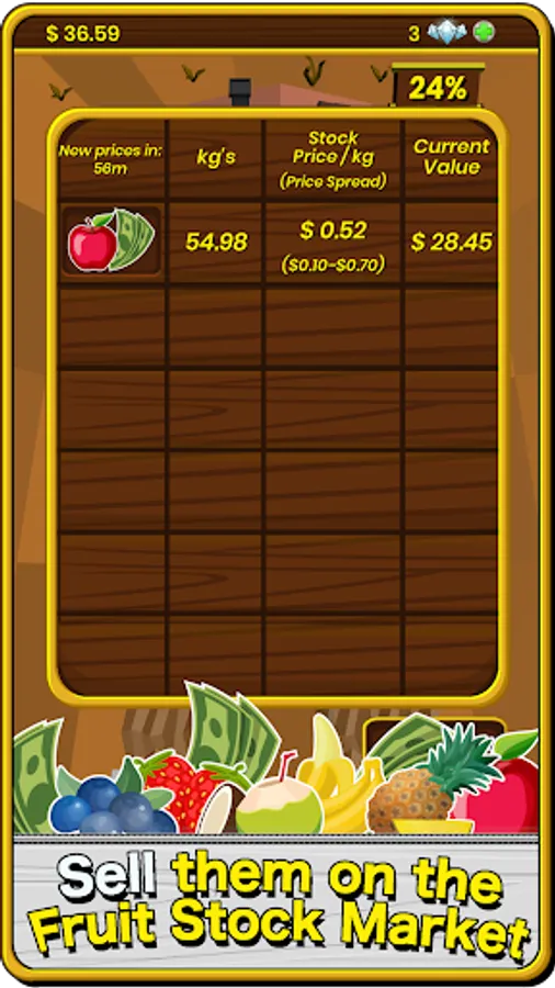 - Check the prices in the Fruit Stock Market and sell them for a good price.