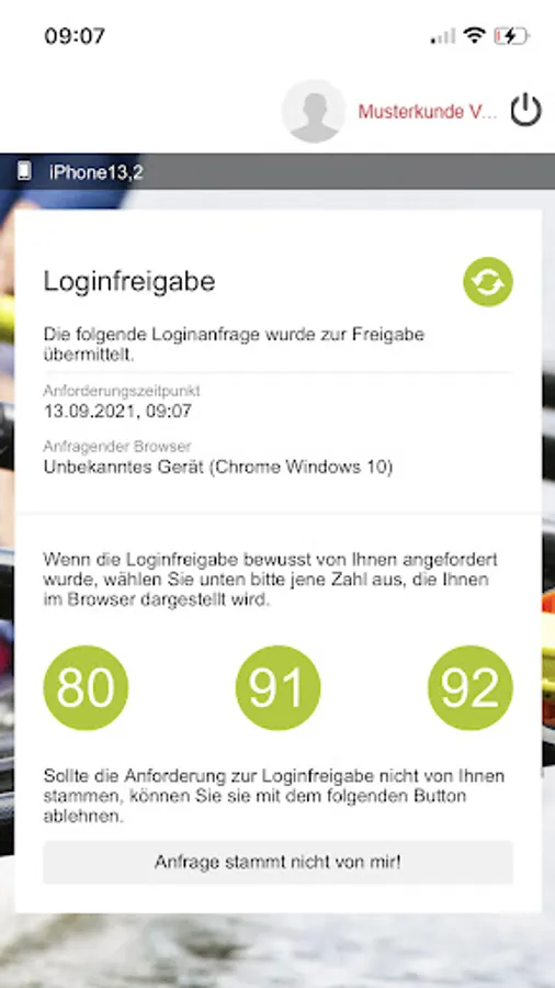 You will then receive a push notification as soon as a request is available. To do this, confirm the control number that is displayed to you in the app.