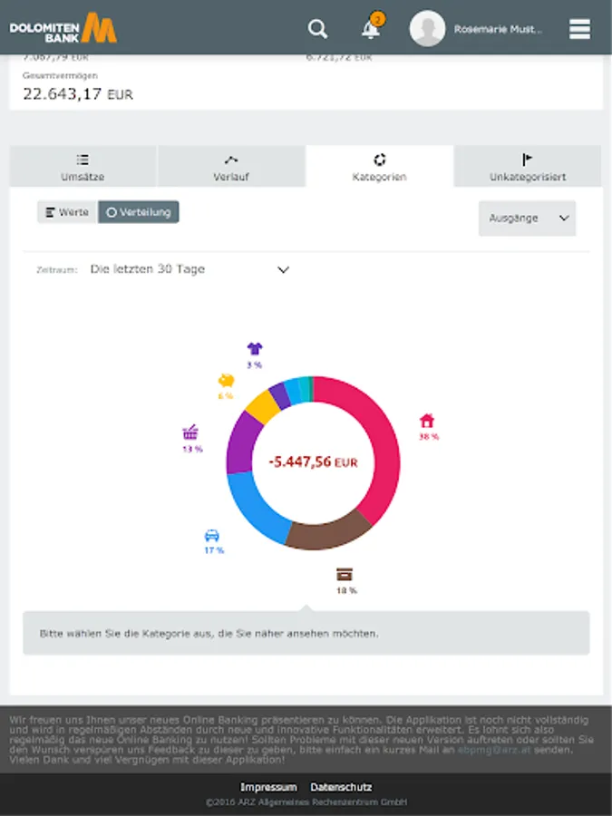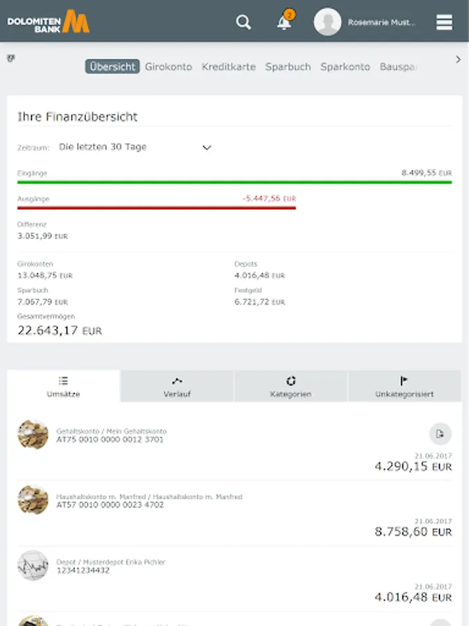 With the banking app for smartphones and tablets in the Dolomites Bank Osttirol Carinthia West eG You can do your banking easy and simple. The modern design makes it easier to keep track of your finances.