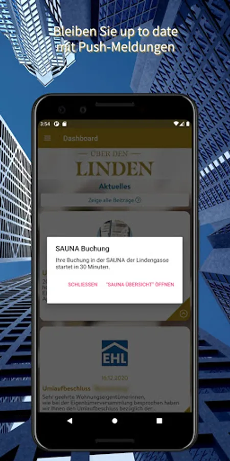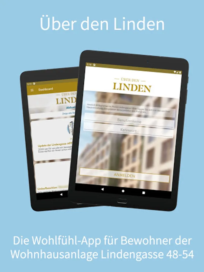 As a resident of the Lindengasse 48-54 residential complex, you have exclusive access to the functions of the "Über den Linden" app.