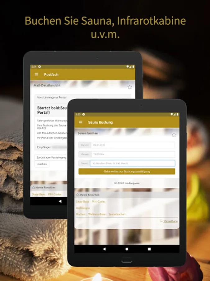 You can easily reserve and use the sauna, infrared cabin, event / office base and guest lounge of your residential complex online.