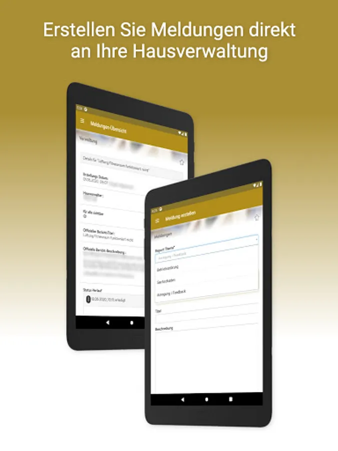 Under Messages you will find current incidents and damage to your residential complex and can even send messages to your property management company.
