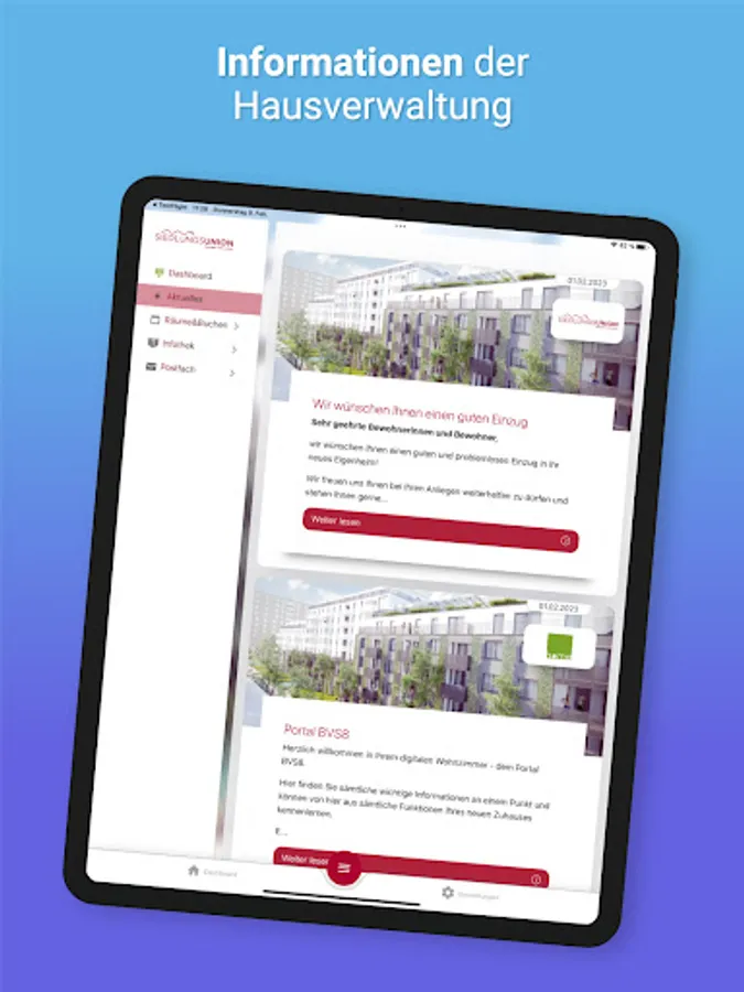 All messages that are exchanged communicatively via your residential building complex can be found in the "Mailbox" area.