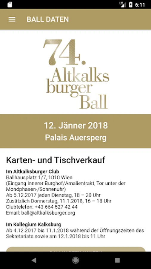 While the ball is time, it is possible to retrieve ball information and to purchase ball tickets directly in the app.