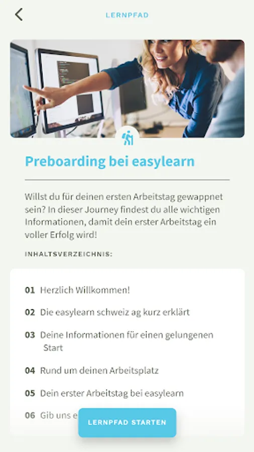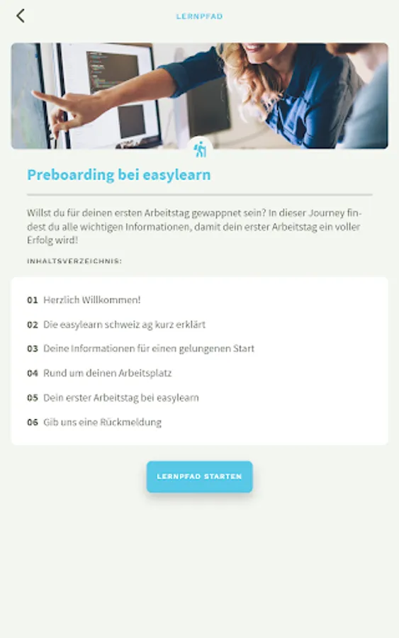 Learning in «chline Häppli» and that it is fun. Be it as text, in pictures, in a dialogue, as tasks or in other forms. In the playful competition, employees can compete against each other in the quiz duel and can always look forward to new learning experiences.