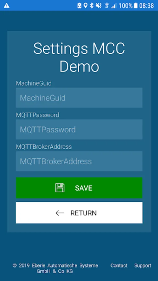 This DEMO application sends sensor data from the mobile phone to the MCC.