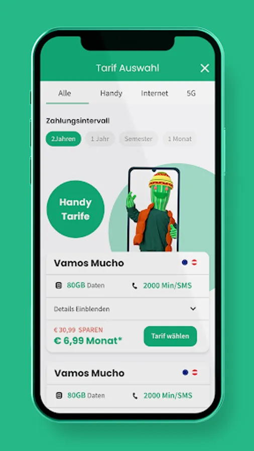 Change tariff: Select the tariff that suits you best from the list