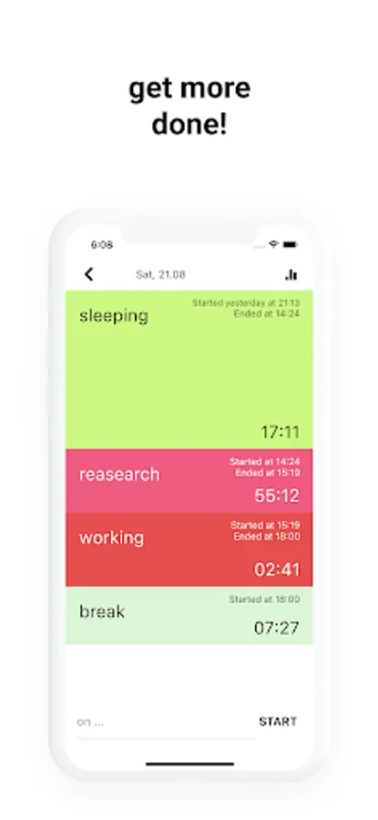 With Timestic's weekly overview feature, you can get a clear picture of your progress and identify patterns in your behavior to make better use of your time. Swipe away any tracked records you no longer need for a clutter-free experience.