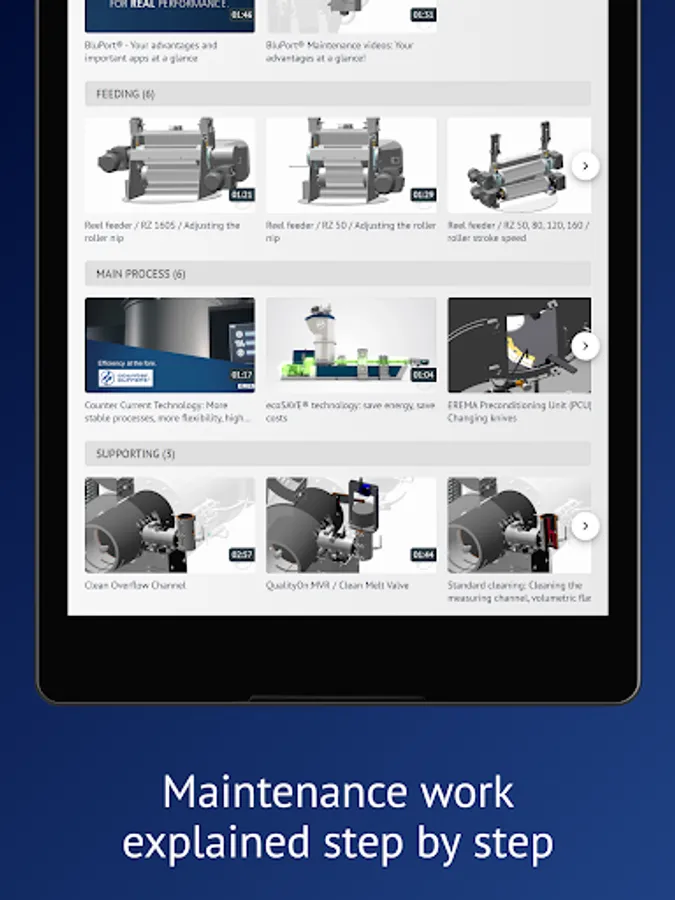 The BluPort® App accompanies your EREMA, PURE LOOP or UMAC machine from the very beginning.