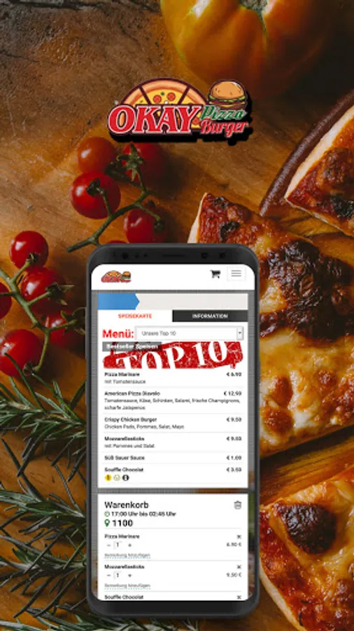 Order now via our new Okay Pizza & Burger app and enjoy your meal!