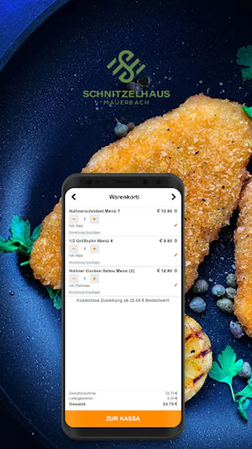 Order your favorite food straight to your home via our new app and enjoy your food in a familiar environment. Or simply pick up your food from us in Mauerbach! Whether it's schnitzel, cordon bleu, burgers or fries.