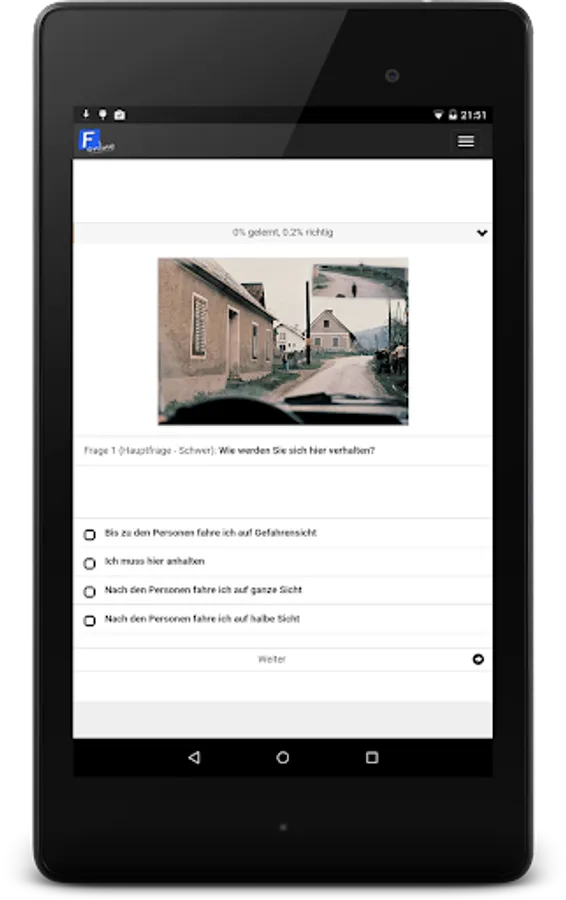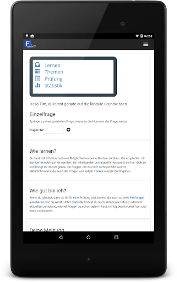 F-Online is already trusted by thousands young people in Austria, which practice over 100,000 questions per day! With this app, you have direct access to the F-Online learning portal. Whether at home or on the move, anywhere you can learn for the theoretical exam in Austria. Whether learning in the app or on the web, the learning status will automatically be synced.
