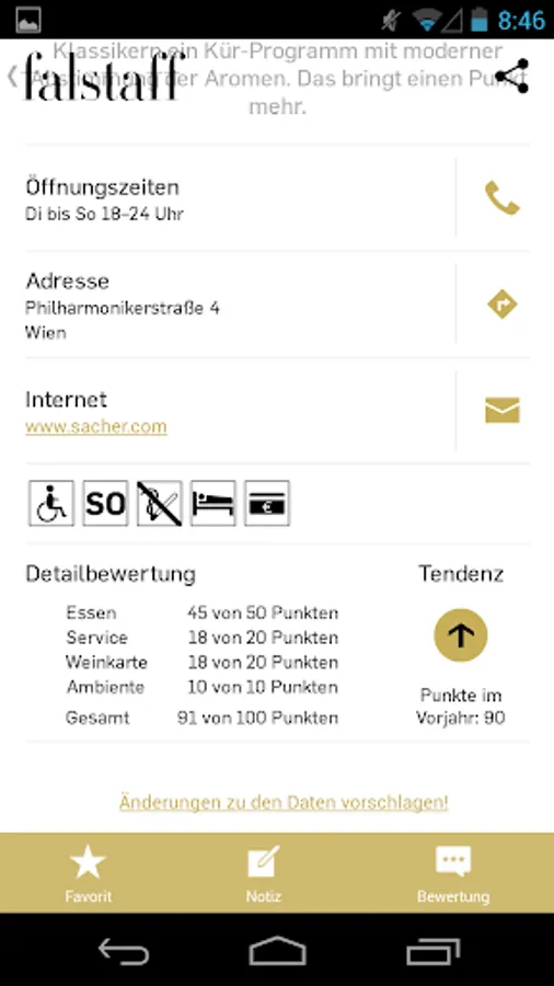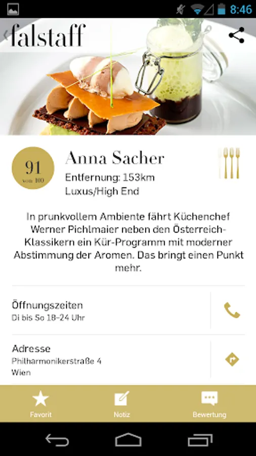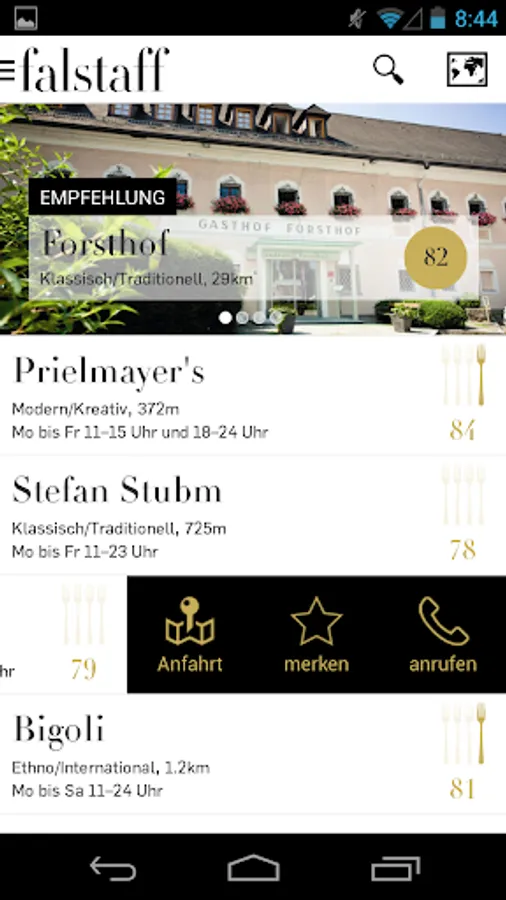 Experience the best restaurants in Austria 3,000 and 9,000 international top restaurants on your smartphone. The new Falstaff Restaurant App you have your enjoyment guide always with you - with assessments of 18,000 Gourmet Club members, restaurant descriptions and impressions of the listed companies.