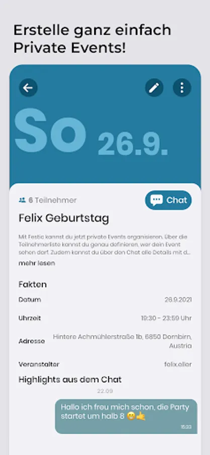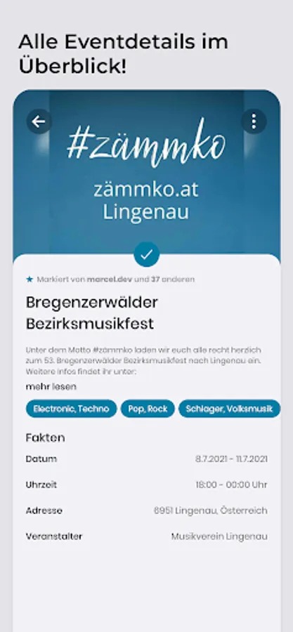 With this app, we offer the first and only all-in-one solution of the best features of existing services. Where else do you see all the events in the country? Where else can you promote your own events? And where else can you see what your friends are up to?