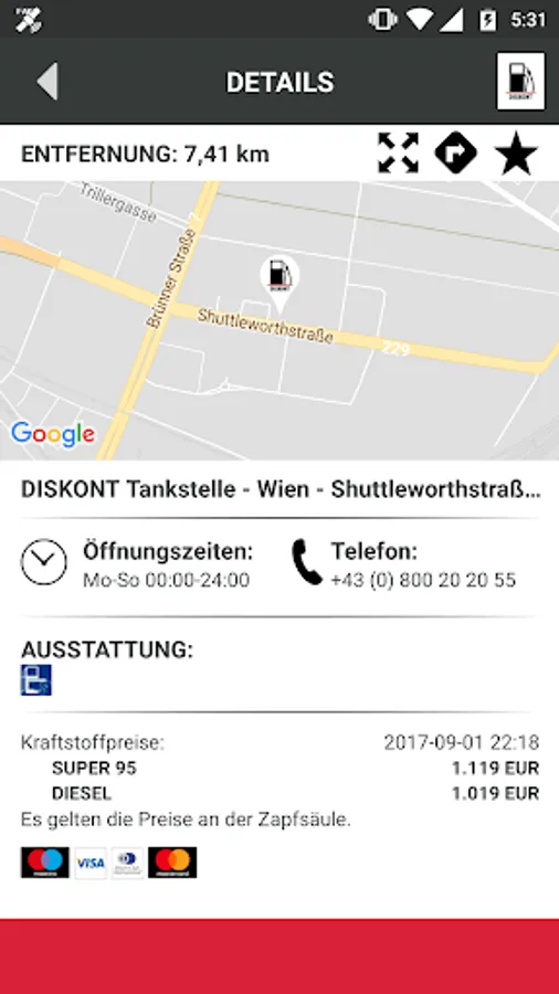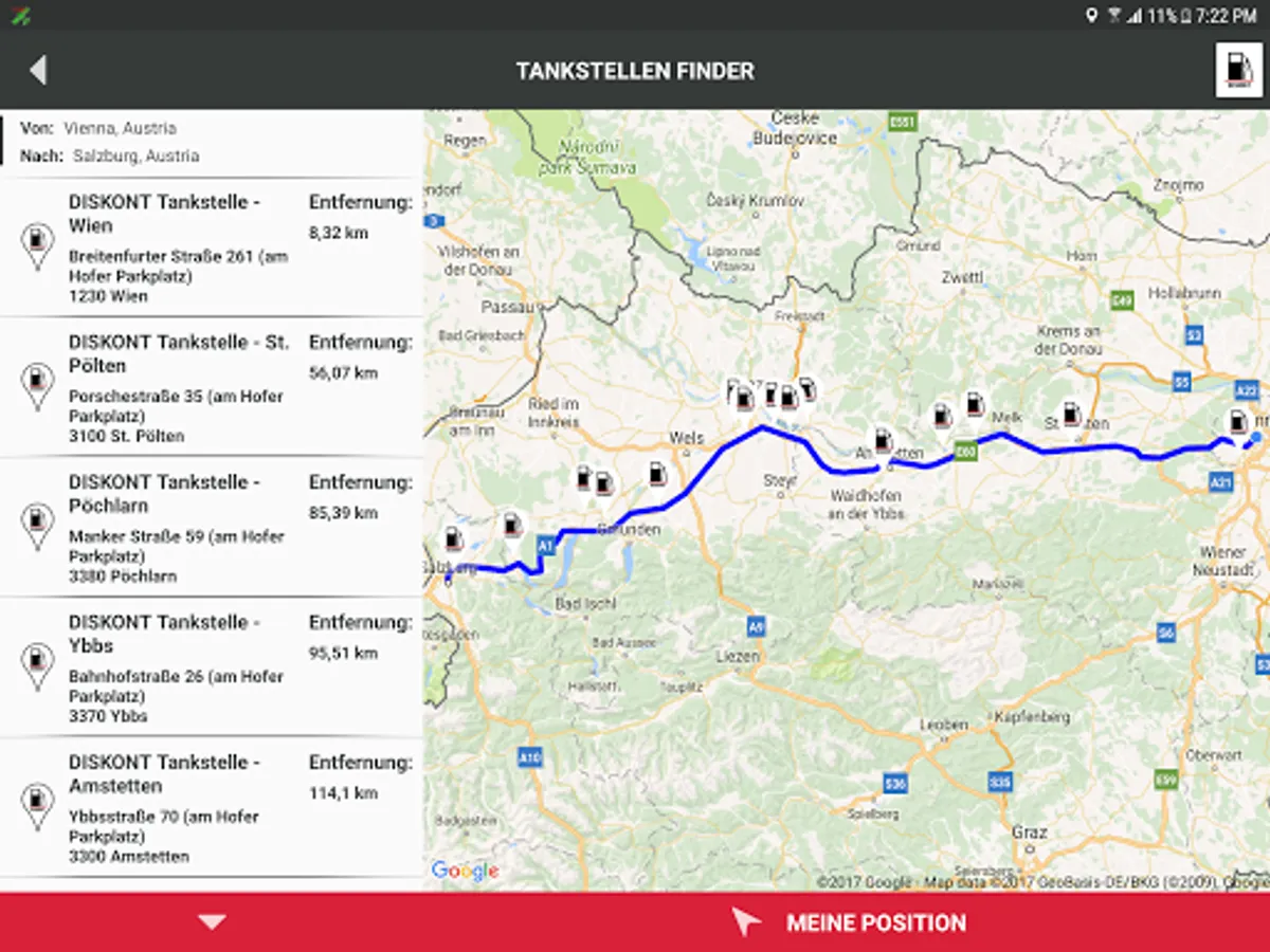 • Route planning with all DISCOUNT petrol stations in the planned itinerary