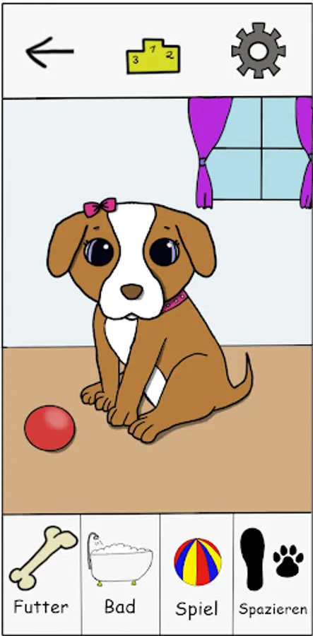 Du hast einen süßen virtuellen Hund, um welchen du dich kümmern musst.
