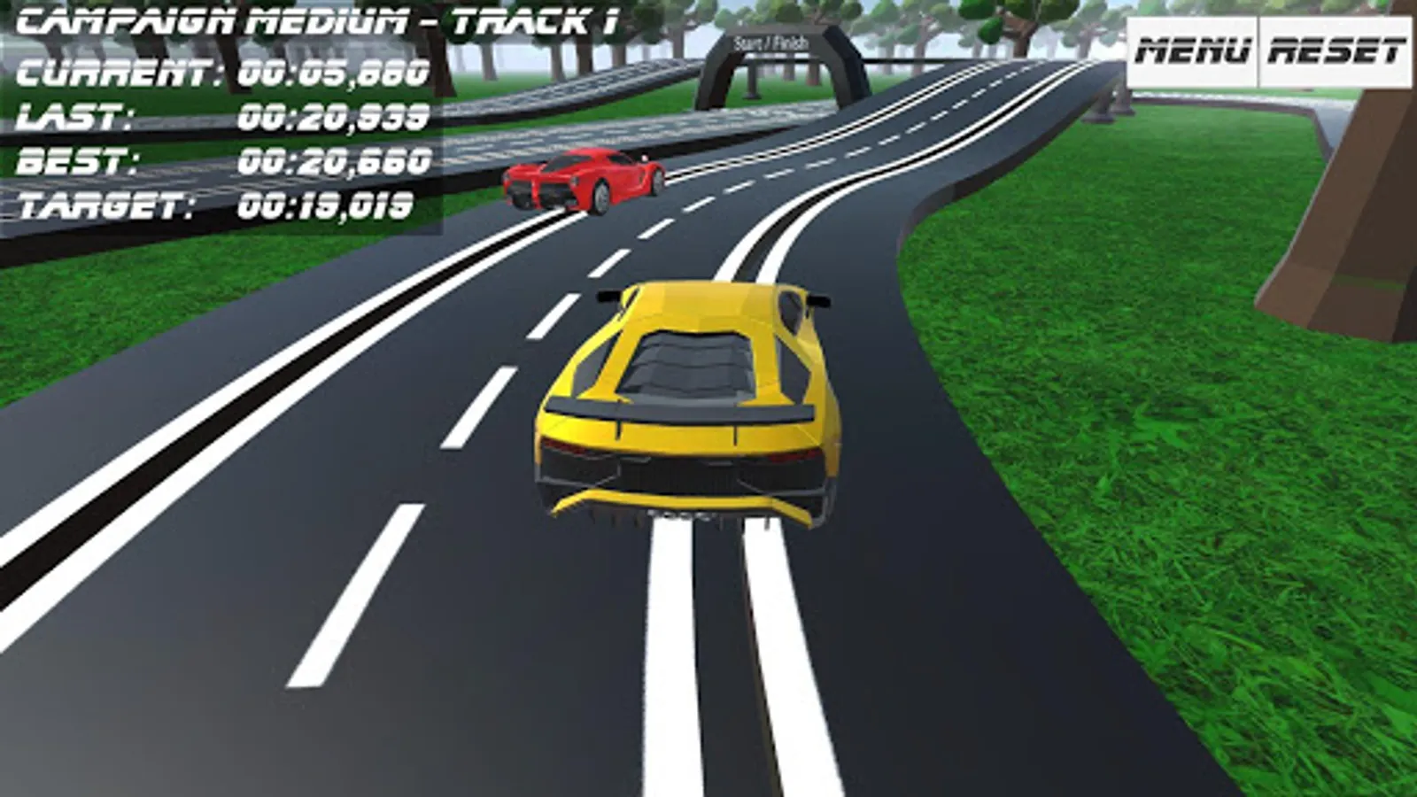 In the new campaign mode you can race against an opponent that sets the target time. If you beat him, the next track is unlocked. After finishing a whole campaign, a new car is unlocked and can be selected in the car park. In total there are 8 different car to chose from in the car park, but some of them have to be unlocked first.