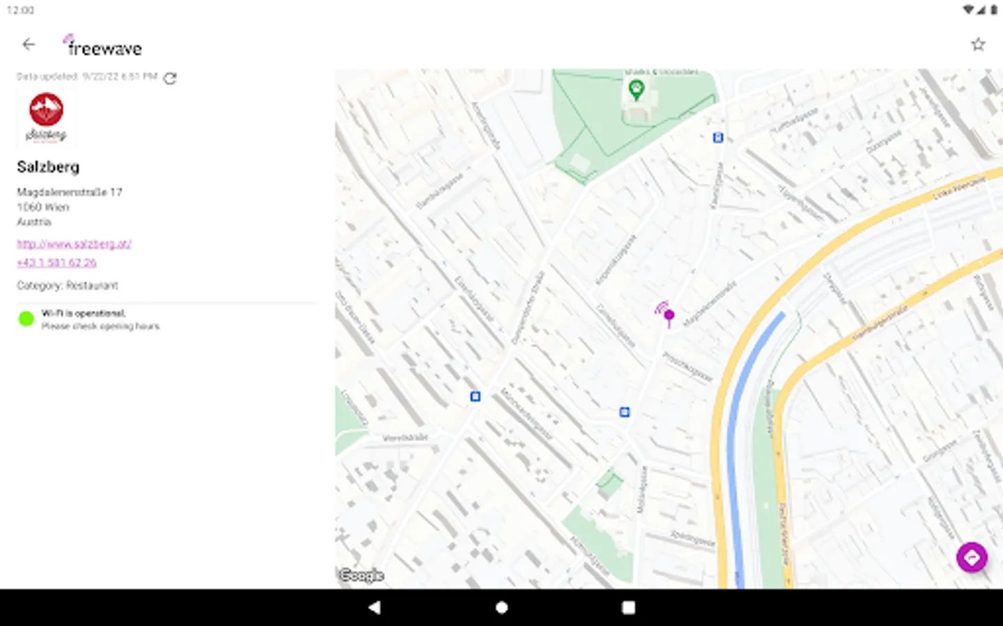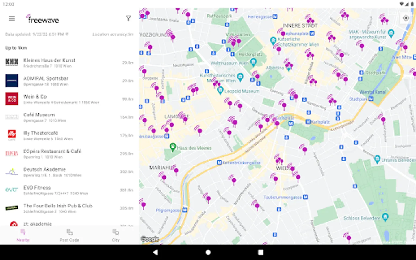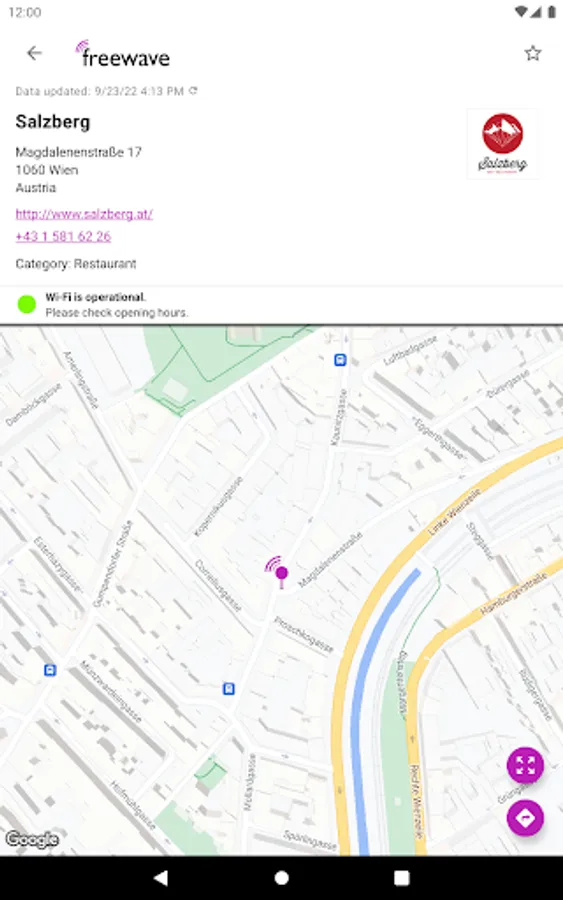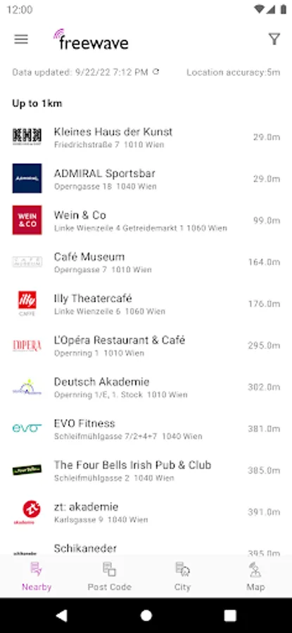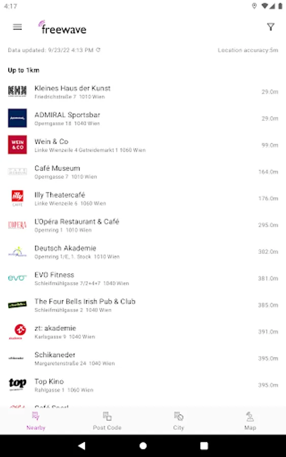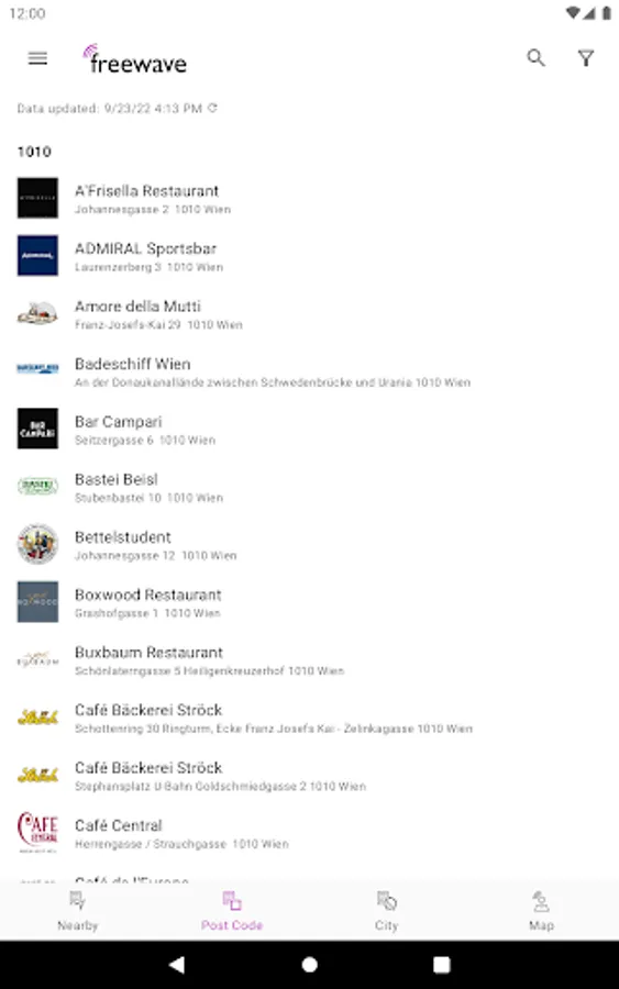Freewave is Austria's #1 free Wi-Fi provider operating more than 850 hotspots in cafés, restaurants, hotels, shopping centres, airports, etc. The use of Freewave Wi-Fi is free of charge. Use this app to find Freewave hotspots in Austria.