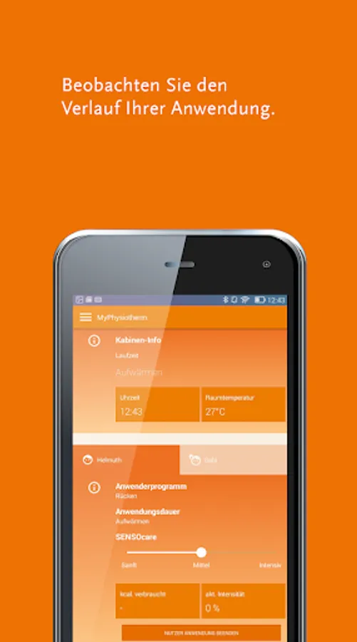 • Record and evaluate infrared applications: The Infrared Diary records and stores all your infrared applications. You receive a lot of interesting information about your application, e.g. the duration of use, the heat flow or calorie consumption.