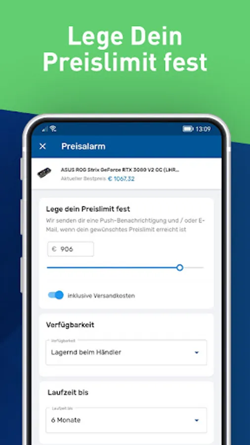 Your budget, your price alert. Receive an automatic notification when your desired price is reached. Of course, including shipping costs.