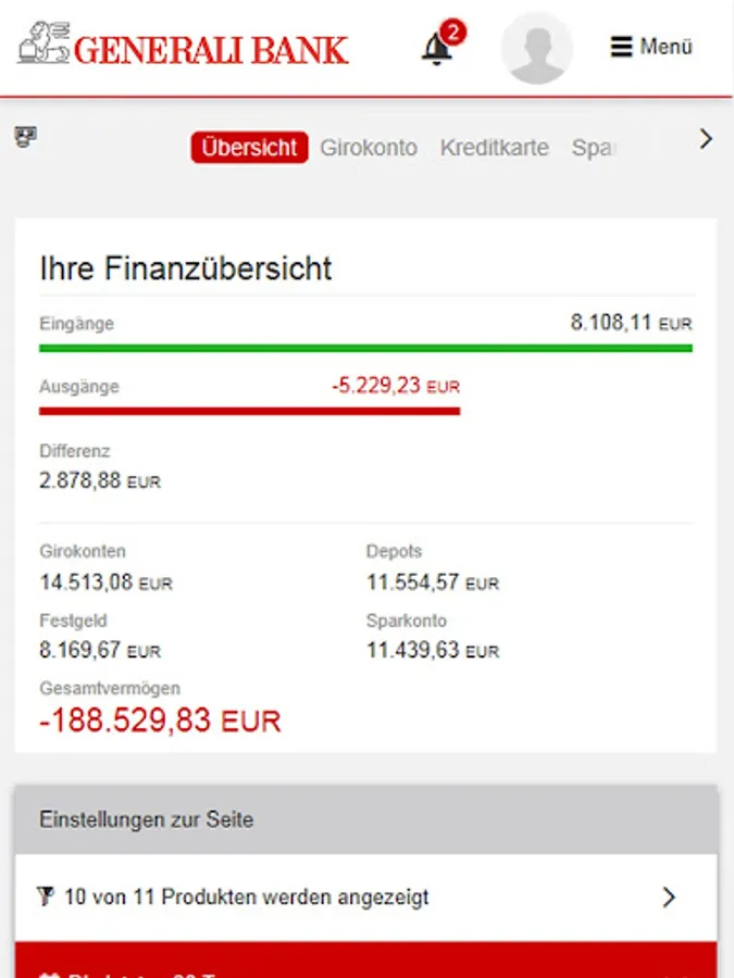 - Secure exchange of messages with Generali Bank via the mailbox in the app