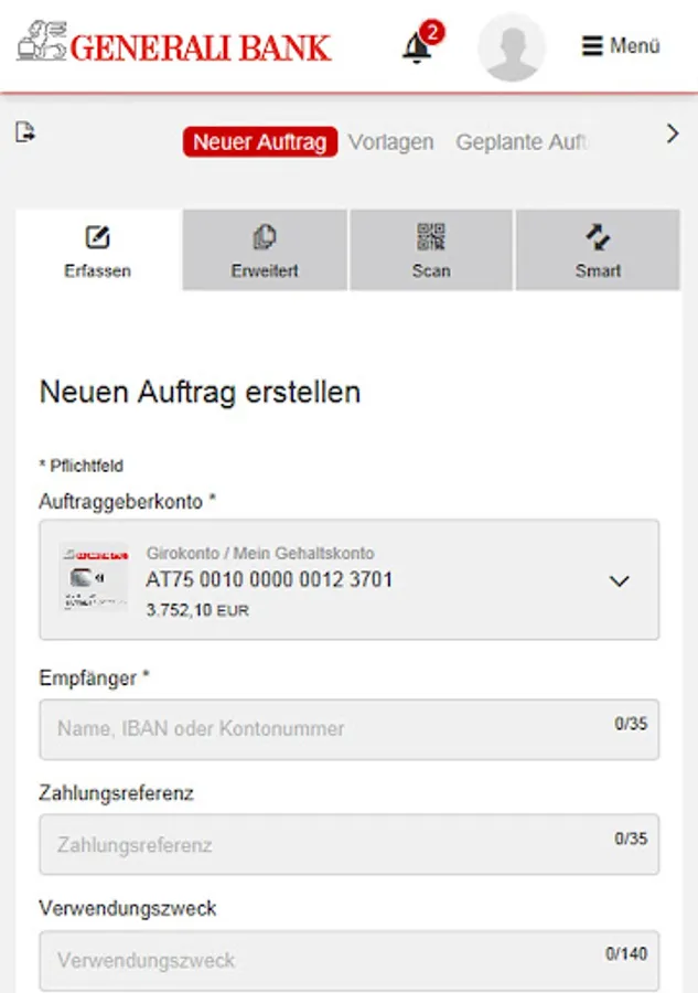 The intuitive MobileBanking app from Generali Bank in Austria offers frequently used banking functions and helpful services in a modern design. This allows you to carry out your banking transactions easily and securely - even when you are on the move.