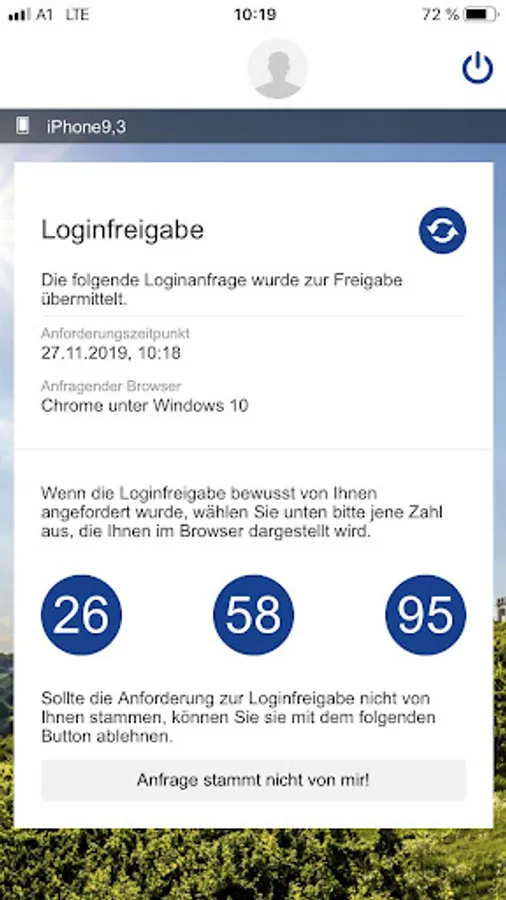You will then receive a push notification as soon as a request is ready. To do this, confirm the control number that is displayed to you in the app.