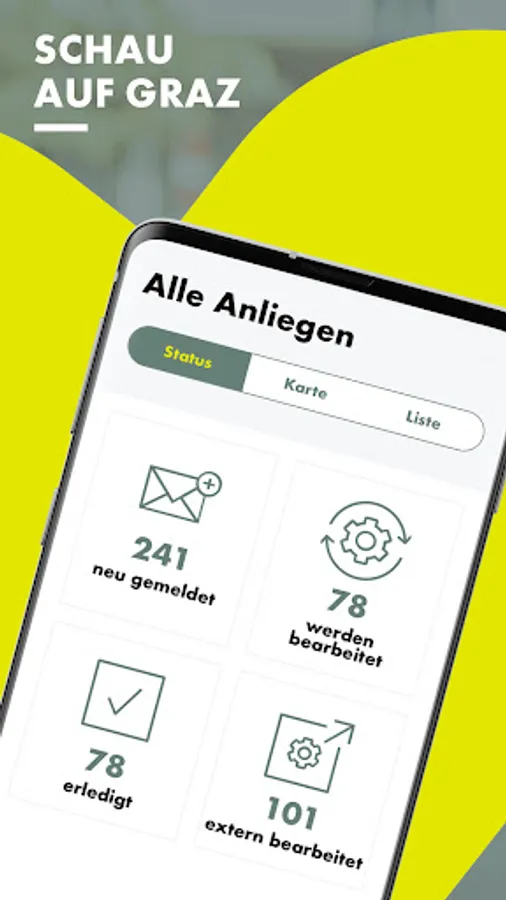 With the "Schau auf Graz" app of Holding Graz, the house of Graz moves even closer to the citizens. You have discovered an overflowing garbage, are annoyed by a damaged traffic sign or have discovered a damaged bicycle? With "Schau auf Graz" you can report all this easily and quickly to the responsible authorities. You mark the location of the incident on the city map, briefly describe your concern and, if possible, add a photo. And off you go, the responsible offices respond to the citizen's concern. And you are always kept up to date about the respective status via a traffic light system.