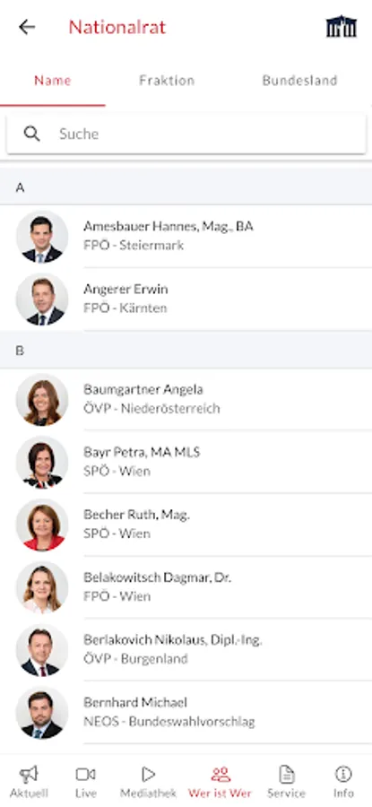 In the "Who is Who" you can find photos and brief biographies of all mandataries in the National Council and Federal Council and the members of the Federal Government with contact details. In addition to the "transparency list" list in accordance with § 9 Remuneration Limit BVG, the current distribution of seats and the seating plan in the National Council and the Federal Council are available.