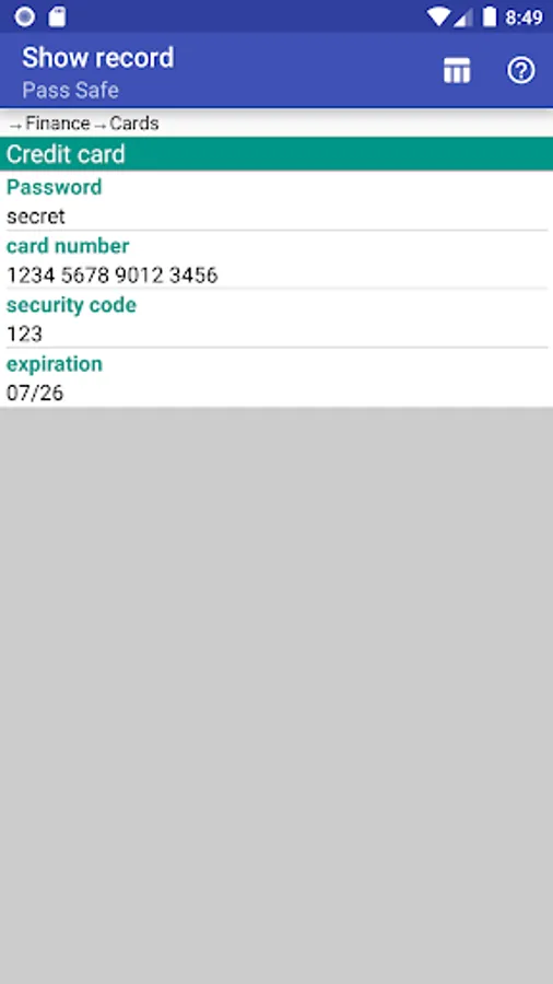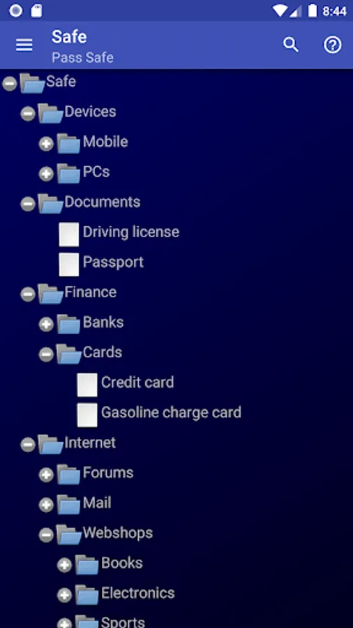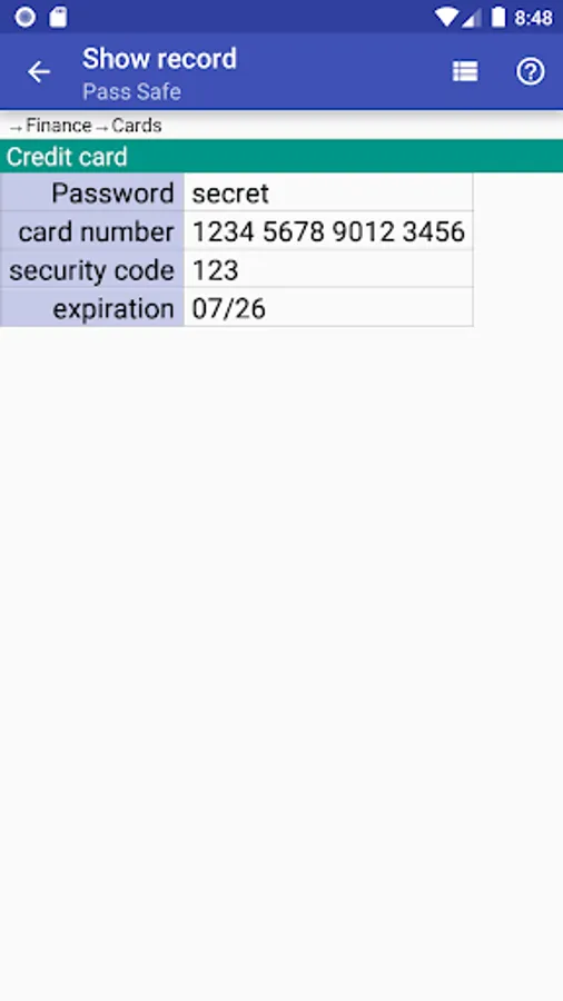 Having trouble to remember all your passwords, usernames, accounts, account numbers, customer ids, security codes, identifiers, pins? Pass Safe can be used to store all your passwords, user names, accounts etc. All you need to know to have access is one master password. Your data is stored encrypted (AES-256 cypher is used) on your device only.