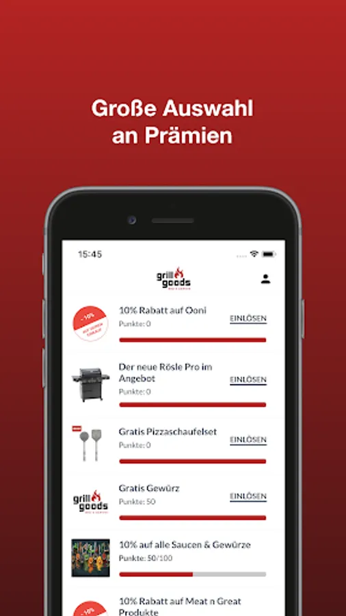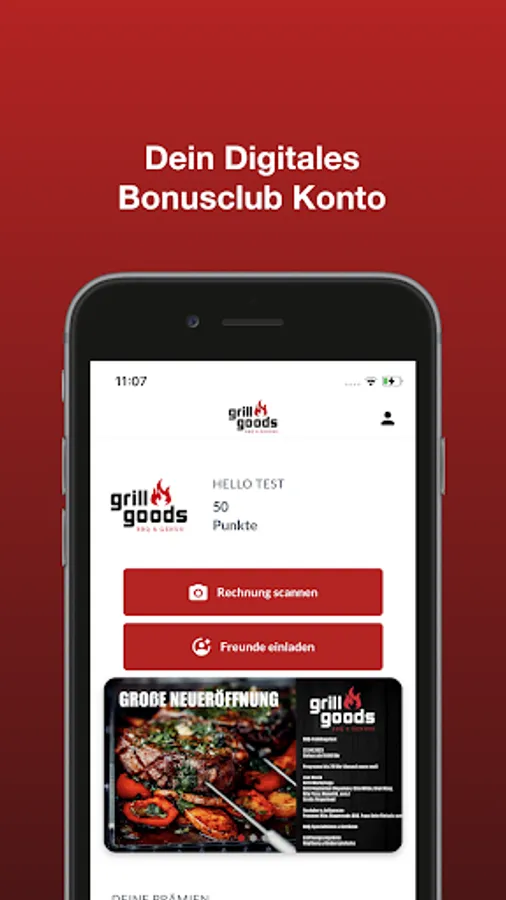 The hello again Grillgoods app is a loyalty app available for all smartphones.
