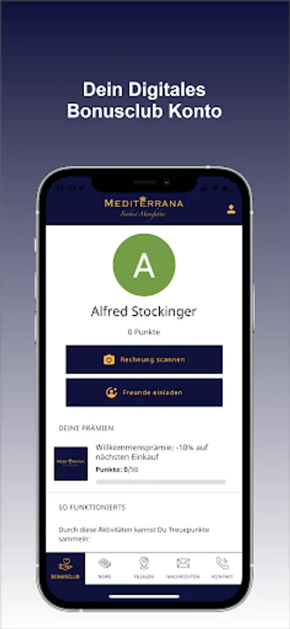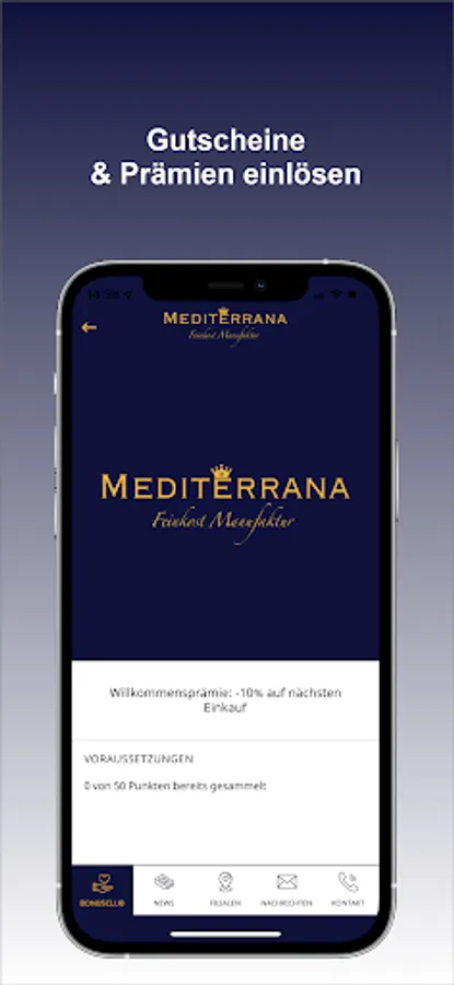 The Mediterrana Feinkost app is your digital loyalty program! You can easily collect points through various activities and redeem them for great prizes.