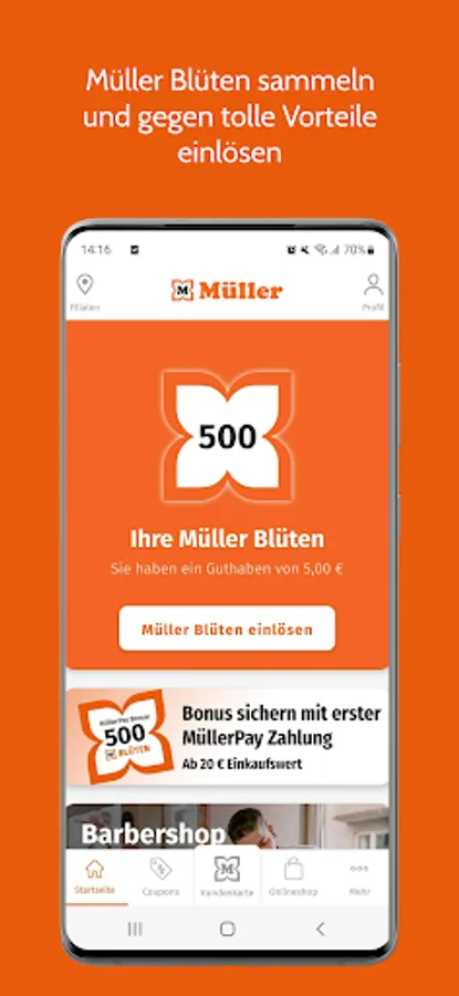 Switch to the new Müller app now and benefit from additional advantages and use it across borders. Your existing customer account will be transferred, including your collected flowers & invoices. Simply log in to the new Müller app with your usual login data. A 10% coupon for your next purchase awaits you there as a reward for the change.