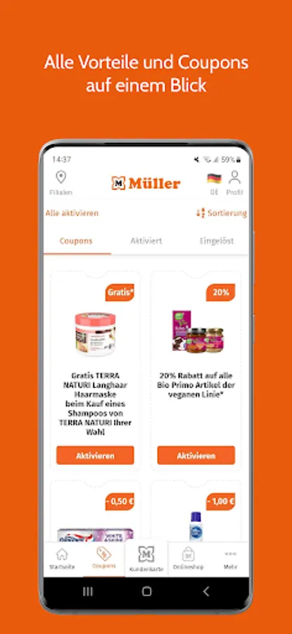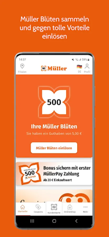 The Müller app offers you many advantages, such as a digital customer card, coupons, competitions and much more. Benefit from these advantages.