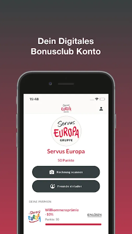 hello again's Servus Europa app is a loyalty app that is available for all smartphones.