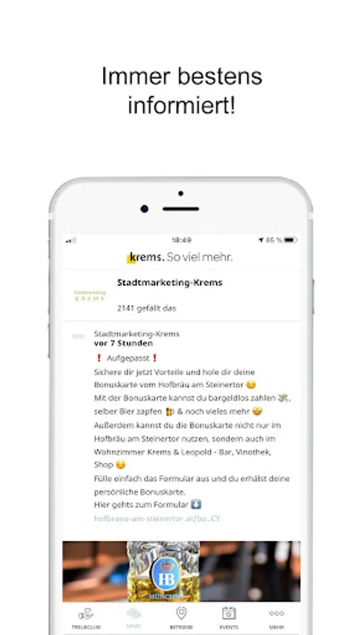 The Krems bonus app is your digital loyalty program! You can easily collect points through various activities and redeem them for great rewards.