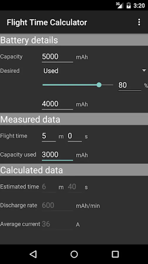 Flight Time Calculator is used to calculate save flying times for your R/C models.